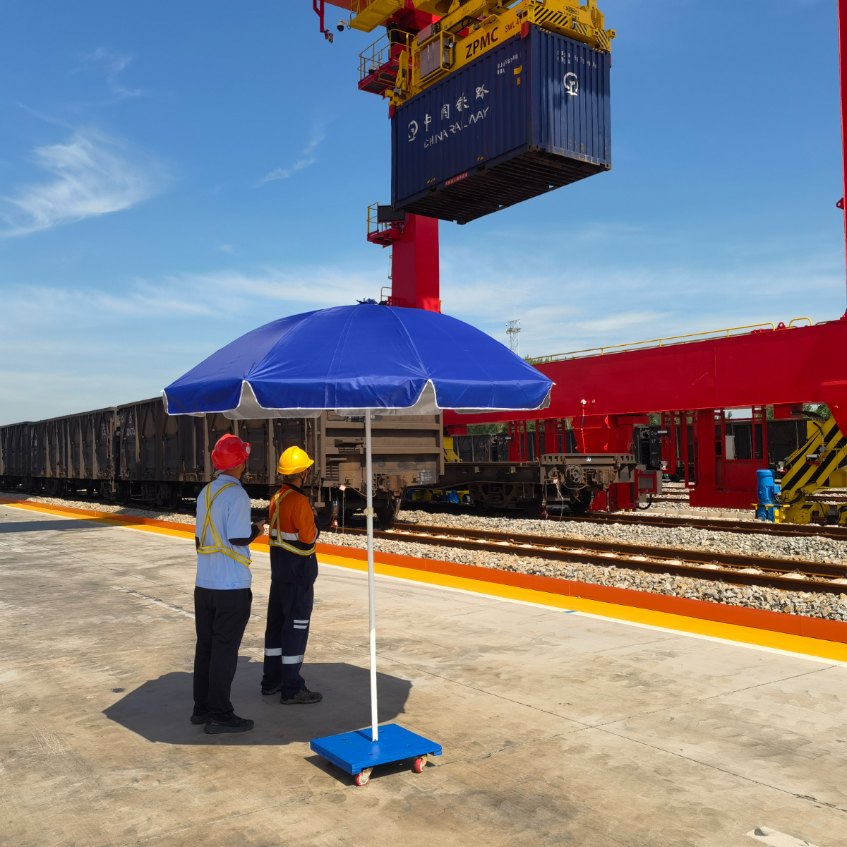炎炎夏日,龙拱港为一线职工打造“移动遮阳伞”,为烈日下的坚守撑起一片清凉天地,全程提供阴凉庇护。