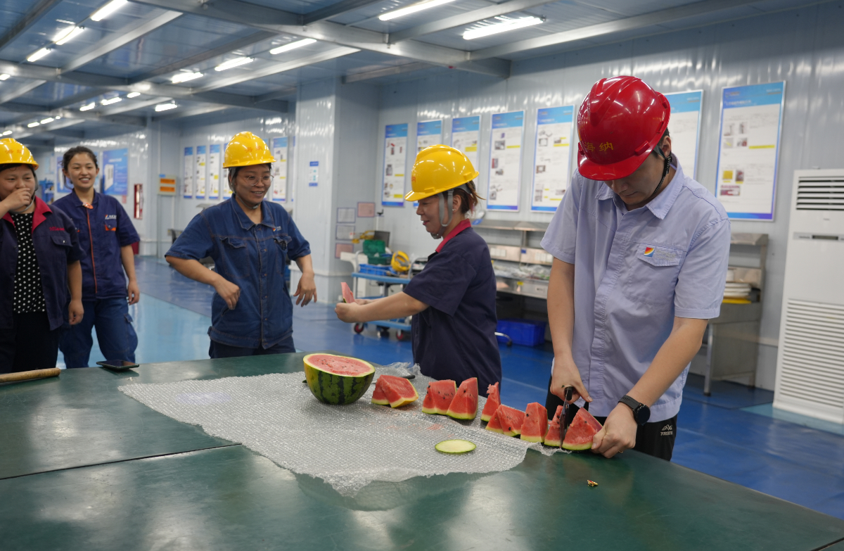7月4日 ,海纳科技把西瓜等清凉物资发放到班组一线为坚守岗位的一线职工,助力清凉度夏、安全生产。
