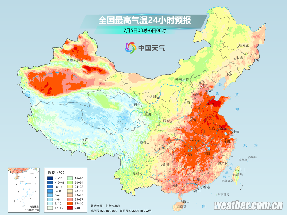 最高气温:内陆地区37~39℃,局部可达40℃以上,沿海地区29~36℃。