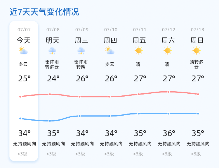 【AI天气】小暑至德州天气多云转雷阵雨 市民需对流天气