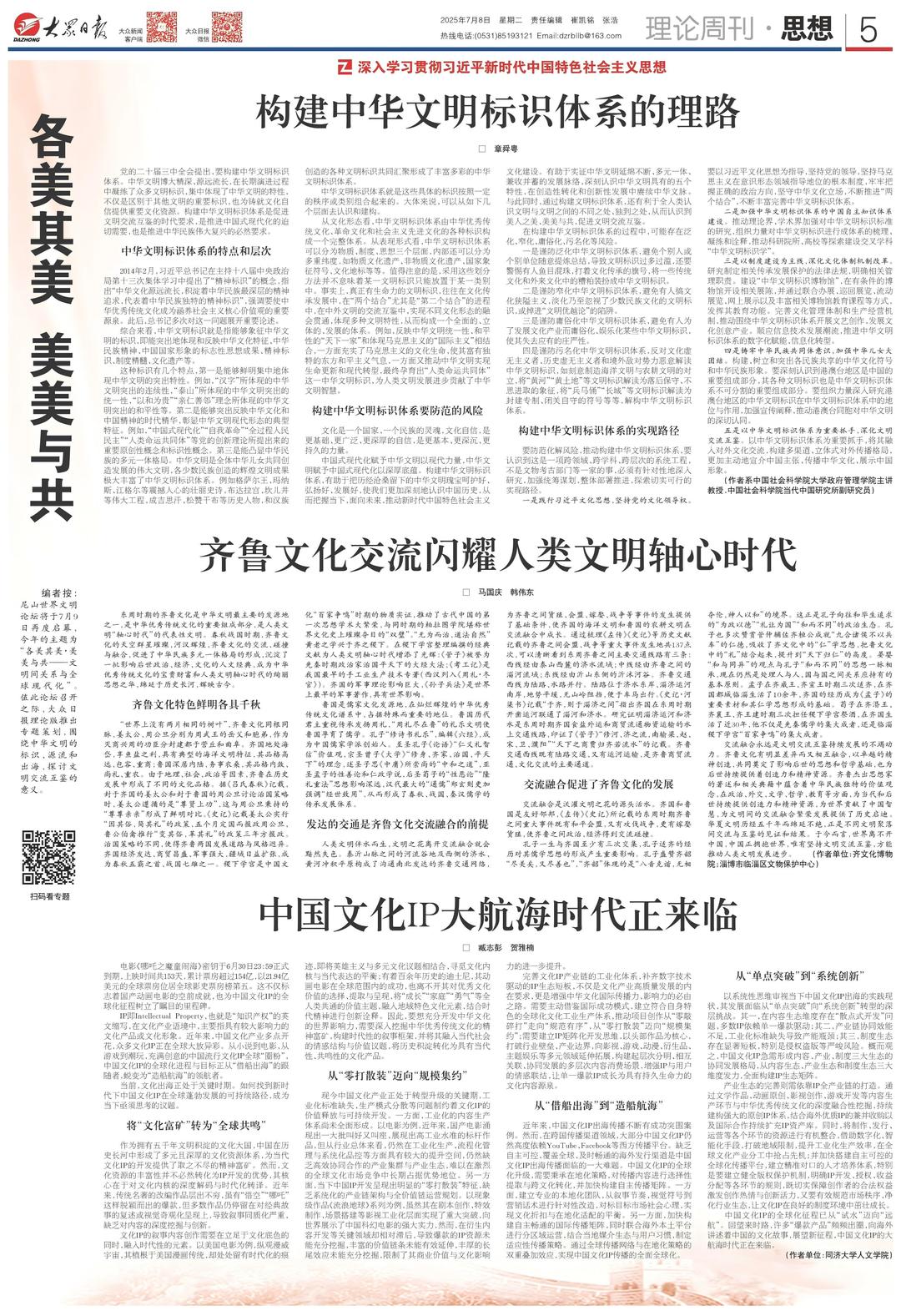编者按:尼山世界文明论坛将于7月9日再度启幕,今年的主题为“各美其美·美美与共——文明间关系与全球现代化”。值此论坛召开之际,大众日报理论版推出专题策划,围绕中华文明的标识、源流和出海,探讨文明交流互鉴的意义。