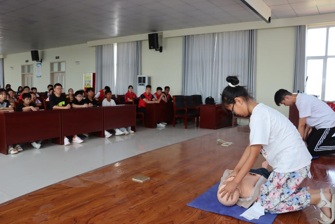 7月7日,山东航空学院乘务学院18名志愿者走进滨州市沾化区黄升镇实验学校,为当地暑期儿童开展了一场生动实用的应急救护专题培训,普及应急救护知识,增强青少年暑期安全意识和自救互救能力。