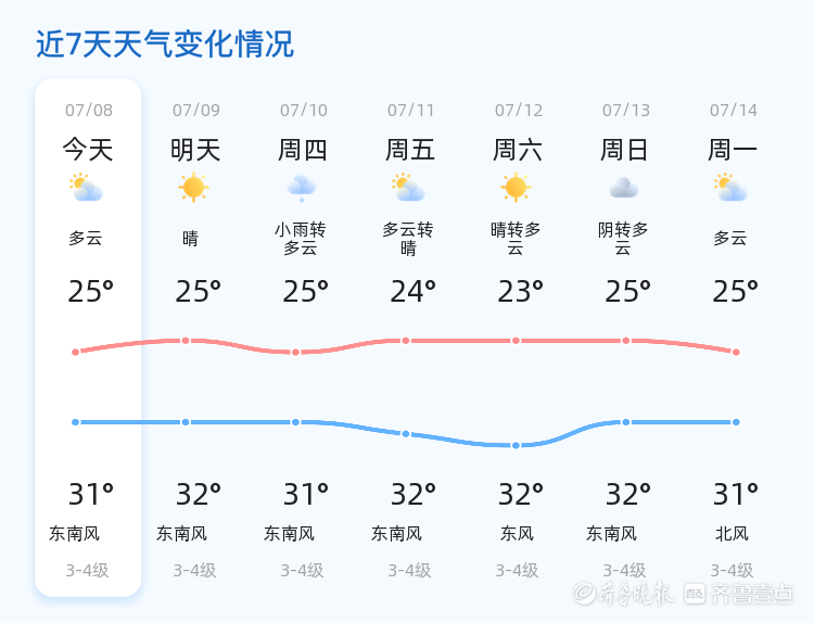未来三天,烟台的天气趋势总体平稳。周四7月10日,天气将出现小雨转多云的情况,气温在25℃到31℃之间。周五和周六天气继续保持晴朗或多云,最高气温可达32℃,最低气温在23℃到25℃之间。周日7月13日,天气转为阴转多云,气温略有波动。建议市民根据天气变化及时增减衣物,特别是周四的小雨天气,市民出行需携带雨具,注意交通安全。