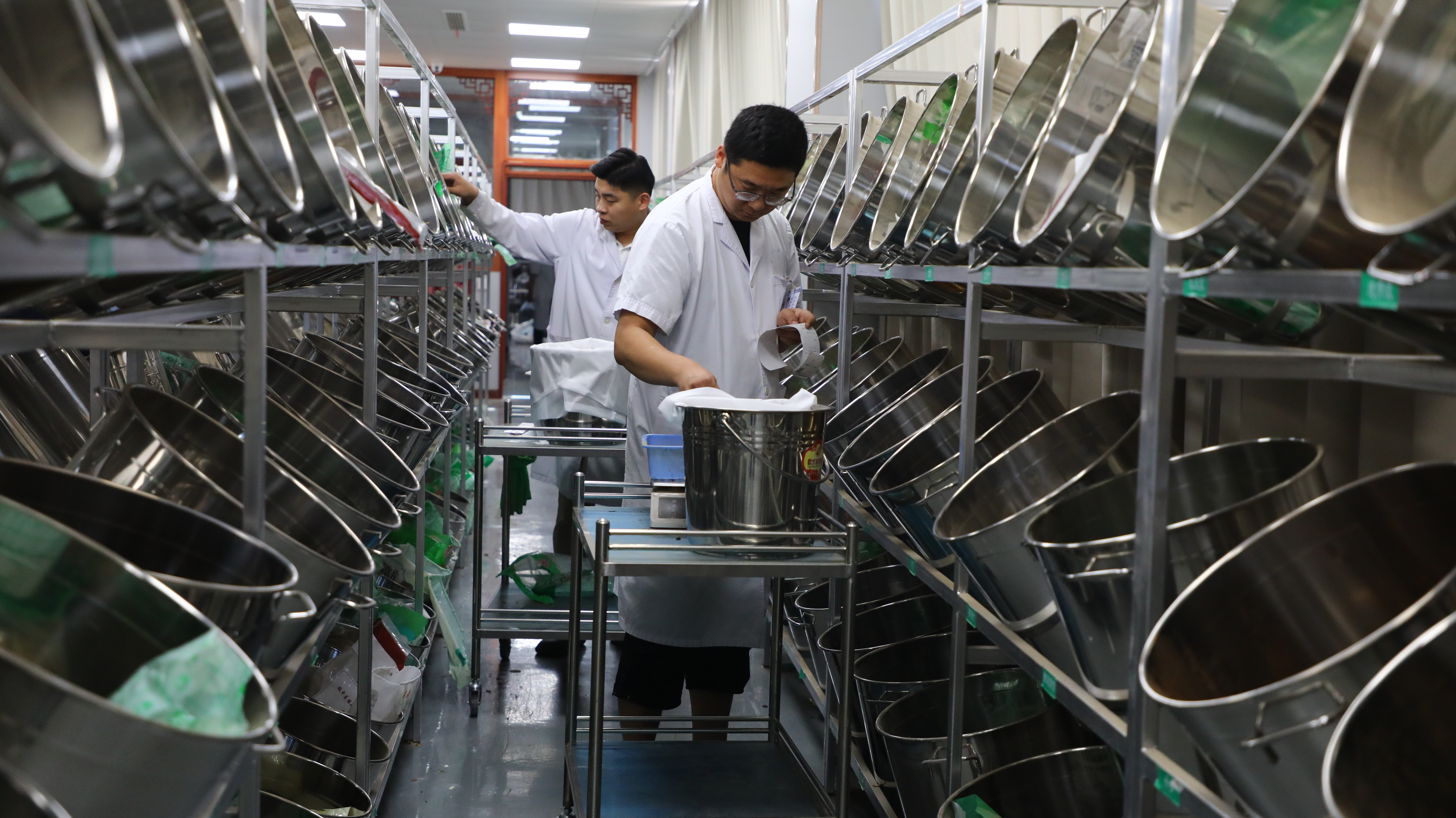 而在中心智能煎煮区,五十余组智能煎药机可满足全县群众中药健康需求。在智能控制系统全程监控下,可利用大数据准确分析、计算药量和水的配比,自动完成一煎、二煎、文火、武火等工艺流程,最大限度保障药效。