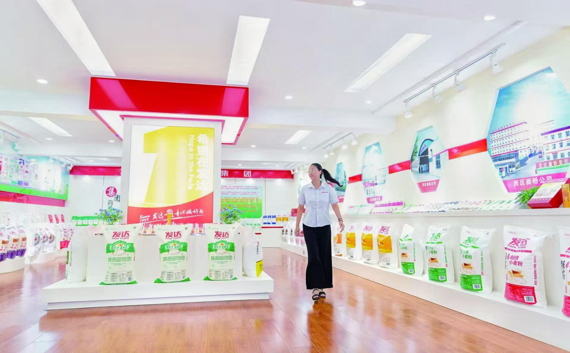 每天上万吨的小麦加工能力,意味着什么?“如果按每人每天消耗一斤面粉,发达面粉一天的产能可以保障1500万人一天的主食用量。”发达面粉保障总监董金鲁介绍,今年前5个月,发达面粉销售量达120万吨。不仅产能大,产品品种也多,拥有1600多个单品的产品体系,包括无添加面粉、高筋雪花粉、烘焙面粉、特殊功能面粉、高蛋白粉等等。另外,企业也会根据客户需求生产定制面粉。“我们新研发的一种爆款产品叫金颗粒面粉,它是取小麦麦芯的位置研磨而成,颗粒度比常规面粉更粗,和面时水少点或多点均可,不影响面食的成型和口感,对厨艺要求低,非常受家庭喜欢。”董金鲁说,面对市场变化,产品体系依旧在不断更新。