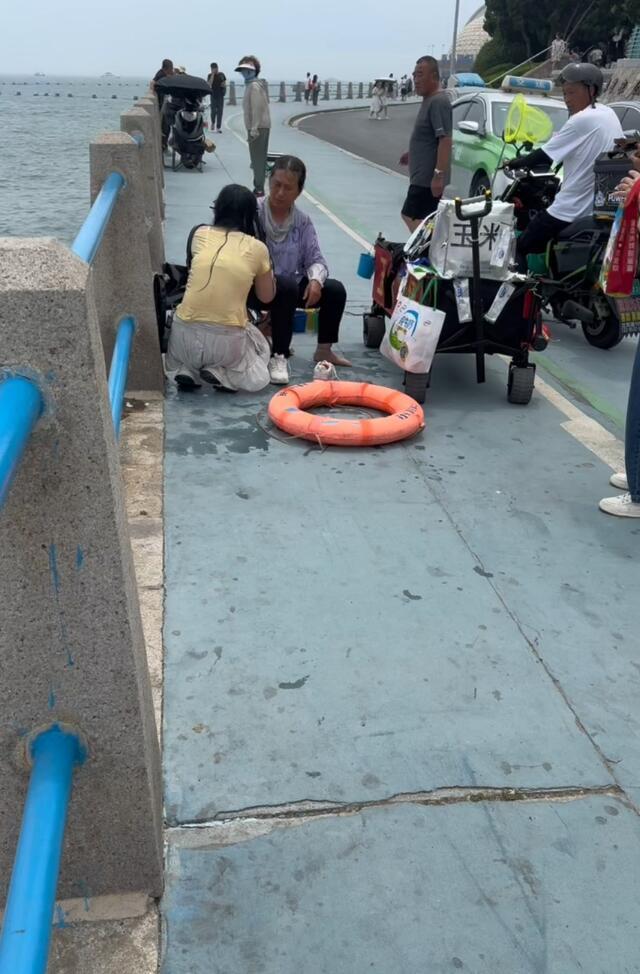 7月7日中午12时左右,在青岛栈桥附近,一女孩在捡落海手机时不慎落水,情势危急。在千钧一发之际,附近一一位大姐跳入海中,借助救生圈,将落水女孩救到岸边,用时大约一分钟。相关视频上传网络后,引发众网友点赞。视频发布者告诉记者,救人大姐下海救人期间受伤,腿上流血。