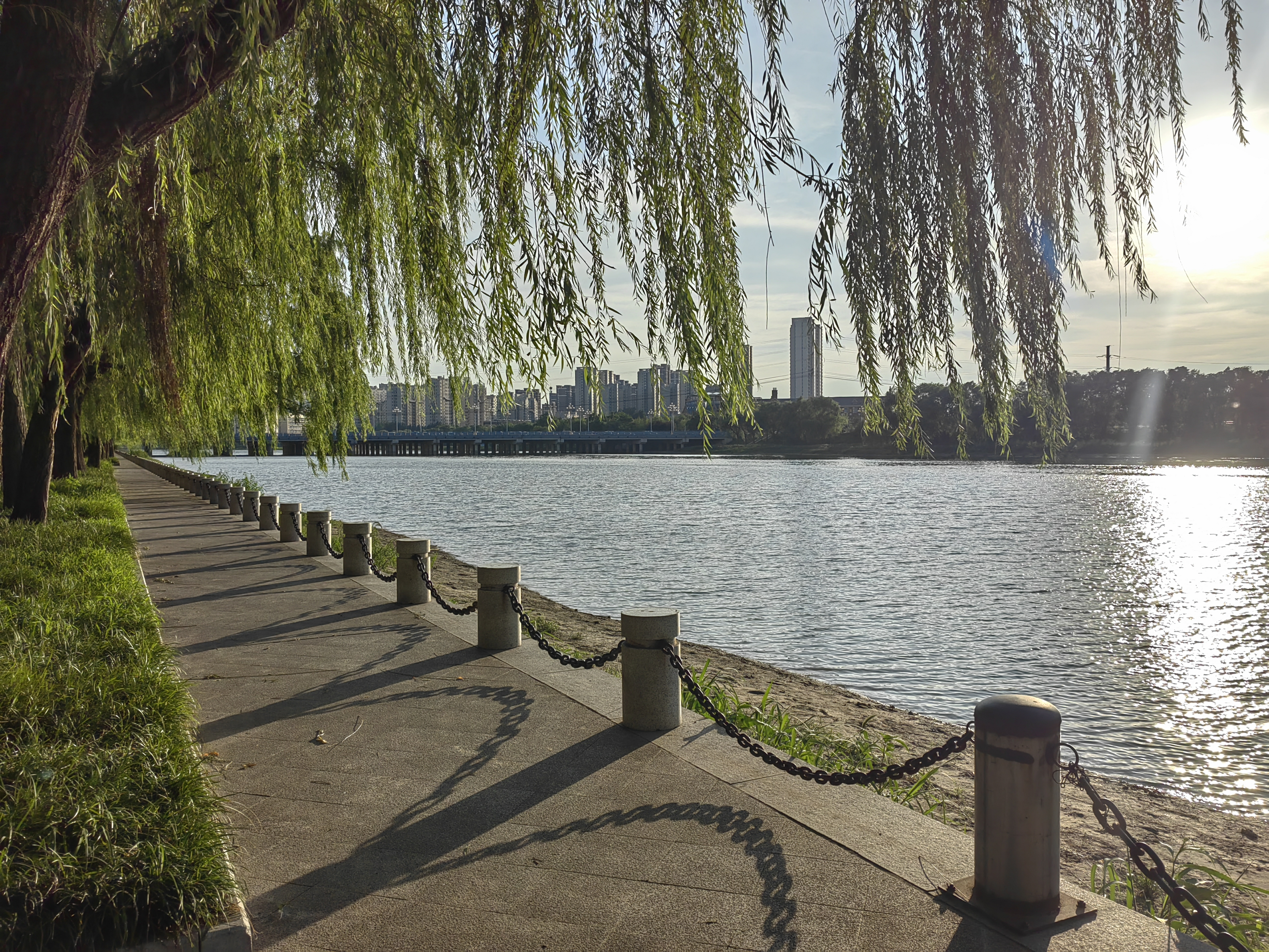 阳光透过层层叠叠的树叶,在徒骇河畔洒下斑驳的光影,微风带着水汽的清凉拂过,岸边的草木郁郁葱葱,偶尔还有鸟儿的啼鸣混着流水声……