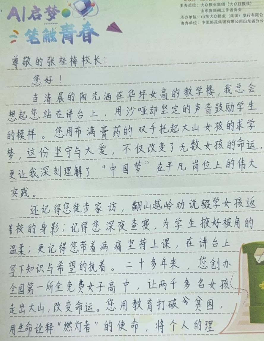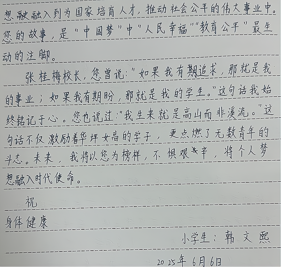 2025青少年书信|韩文熙:写给张桂梅校长的一封信