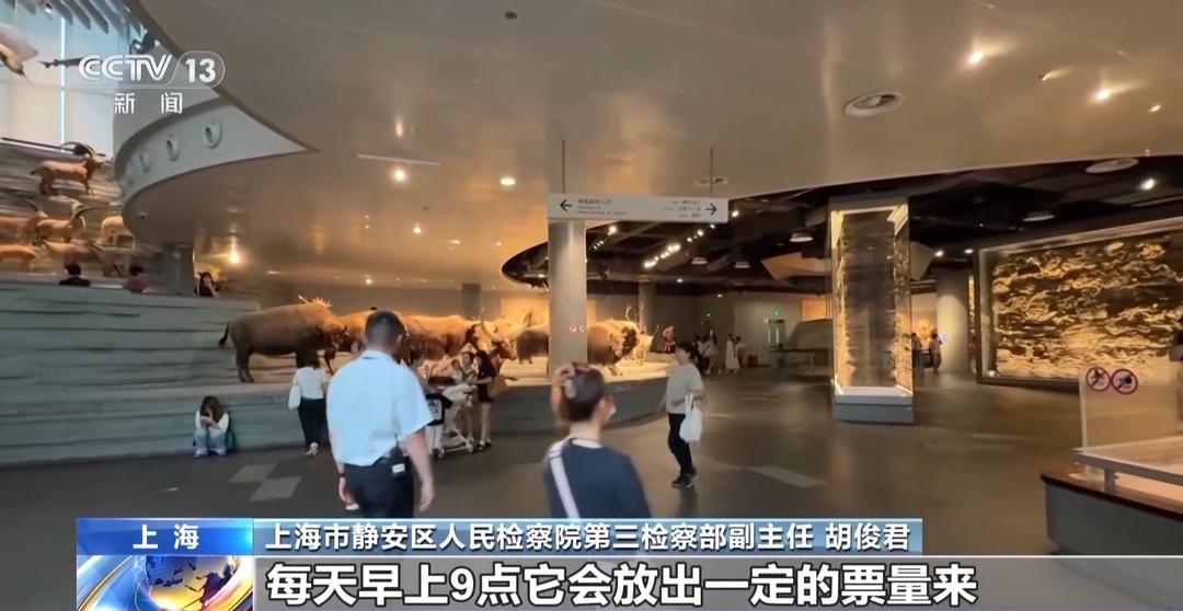 上海市静安区人民检察院第三检察部副主任 胡俊君:每天早上9点,会放出一定的票量来,但是往常的时候可能并不会发生这种一分钟内所有的票都被抢光。从这个现象来看跟往常是不一样的,还有一个异常点是在第三方平台上发现有门票在出售,但其实这个博物馆跟第三方平台没有相关的合作。