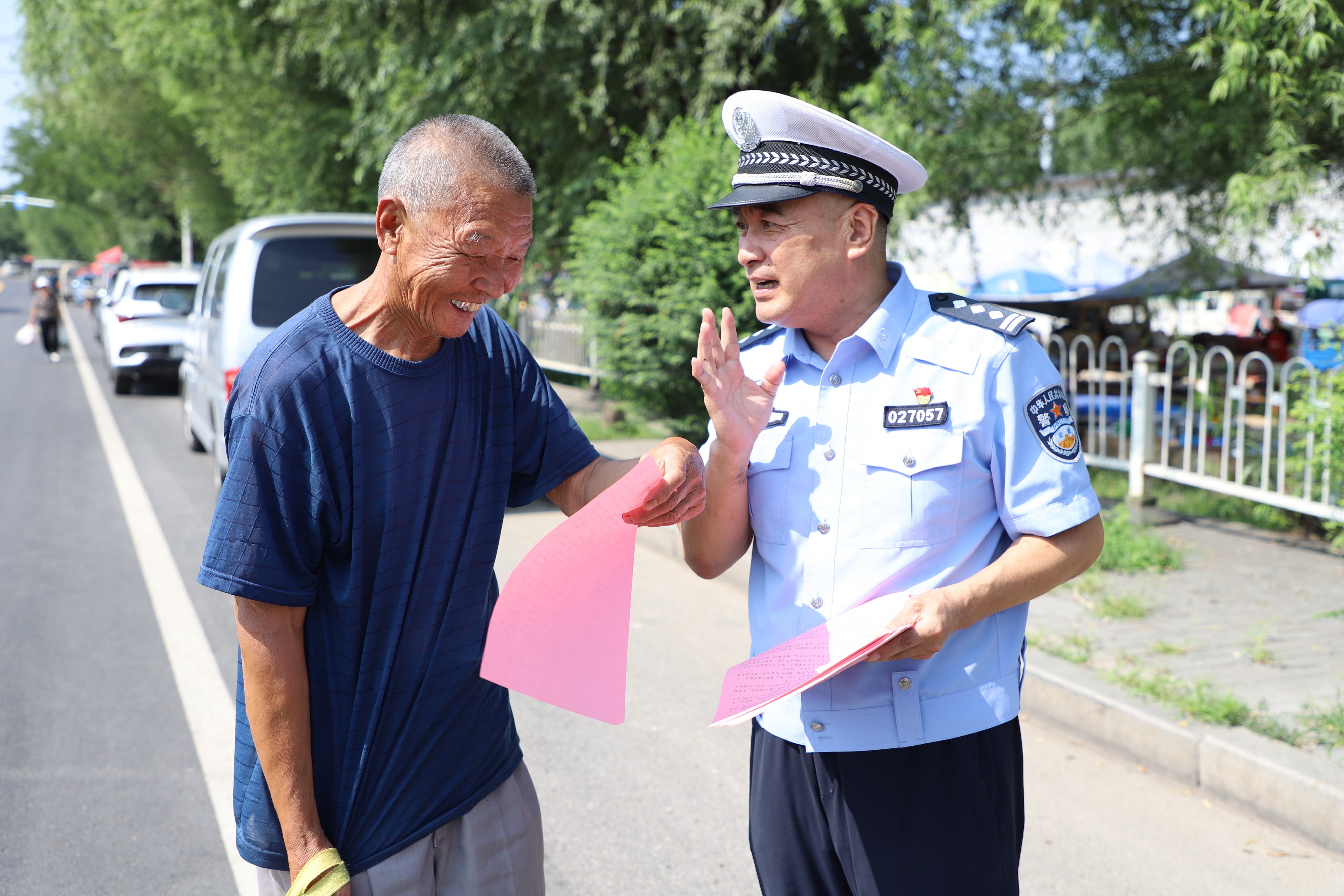 民警号召大家在日常出行时向自己的家人、朋友做好交通安全宣传,并对轻微交通违法行为进行劝导提醒,杜绝无证驾驶、酒后驾驶、不戴安全头盔、超载、超员、货车、三轮车违法载人等交通违法行为,营造良好交通安全出行氛围。