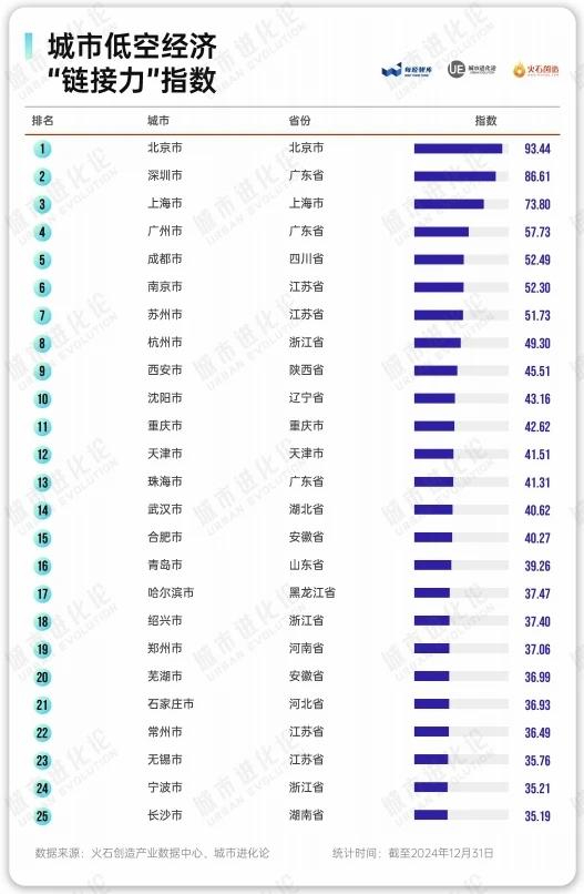 注:图片来源于每日经济新闻·每经智库、城市进化论联合火石创造发布的《城市低空经济“链接力”指数(2025)》报告