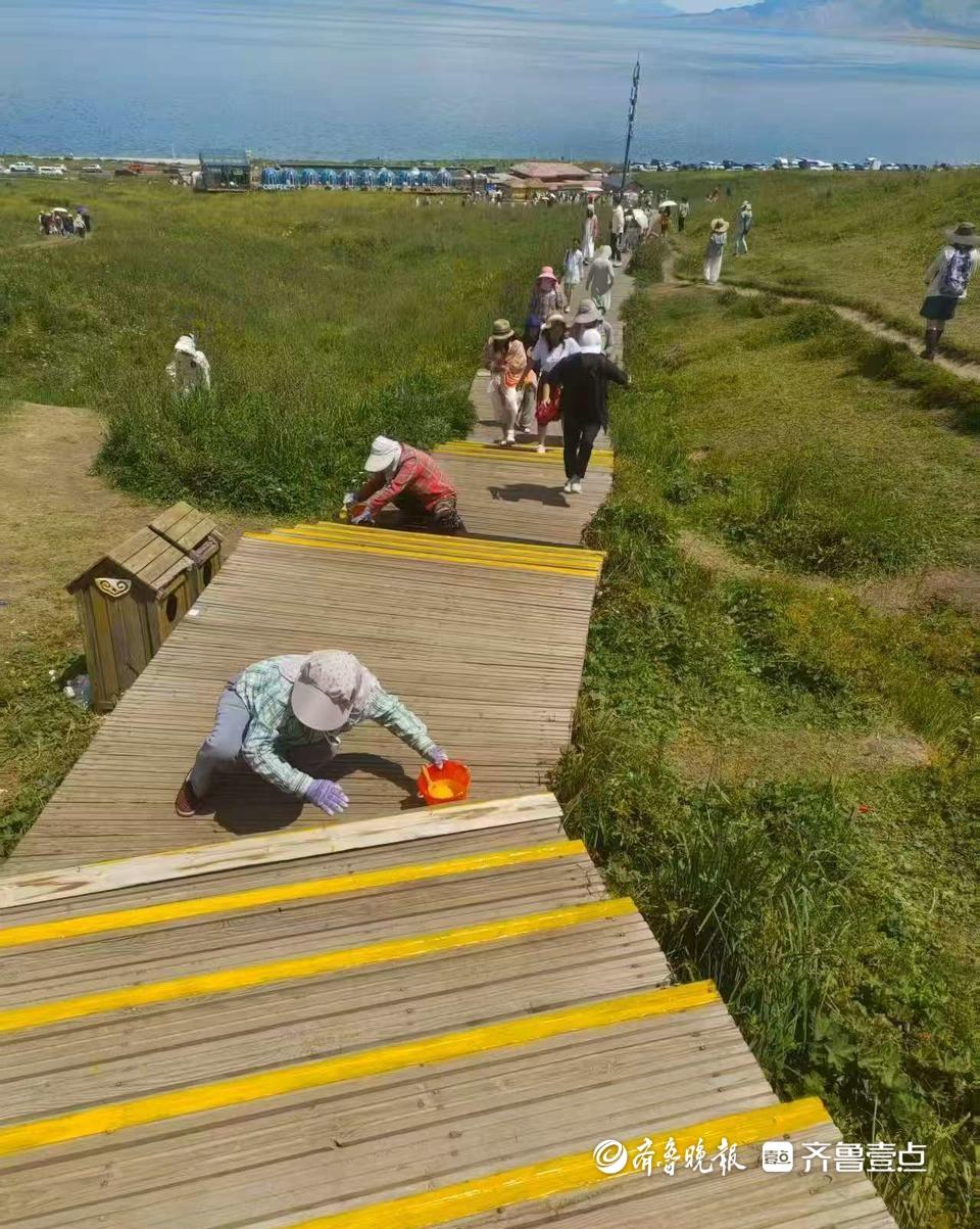 7月11日,齐鲁晚报·齐鲁壹点从赛里木湖景区了解到,从7月10日开始,景区已经在木质楼梯的边缘涂上了油漆,目前施工还在进行中。