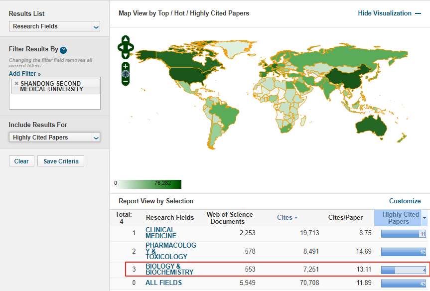 7月10日,科睿唯安(Clarivate)发布的最新《基本科学指标数据库》(Essential Science Indicators,简称ESI)数据显示,山东第二医科大学生物学与生物化学(Biology & Biochemistry)学科进入ESI全球排名前1%,实现学科建设又一历史性突破,标志着学校生物学与生物化学进入国际高水平学科行列。