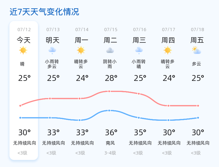 今天是7月12日,星期六,农历六月十八。日照市迎来了一天的晴朗天气,气温在25℃到30℃之间,东北风2级,空气湿度为78%,PM2.5指数为29,空气质量良好。各区天气情况基本一致,均为晴朗,适宜市民户外活动。