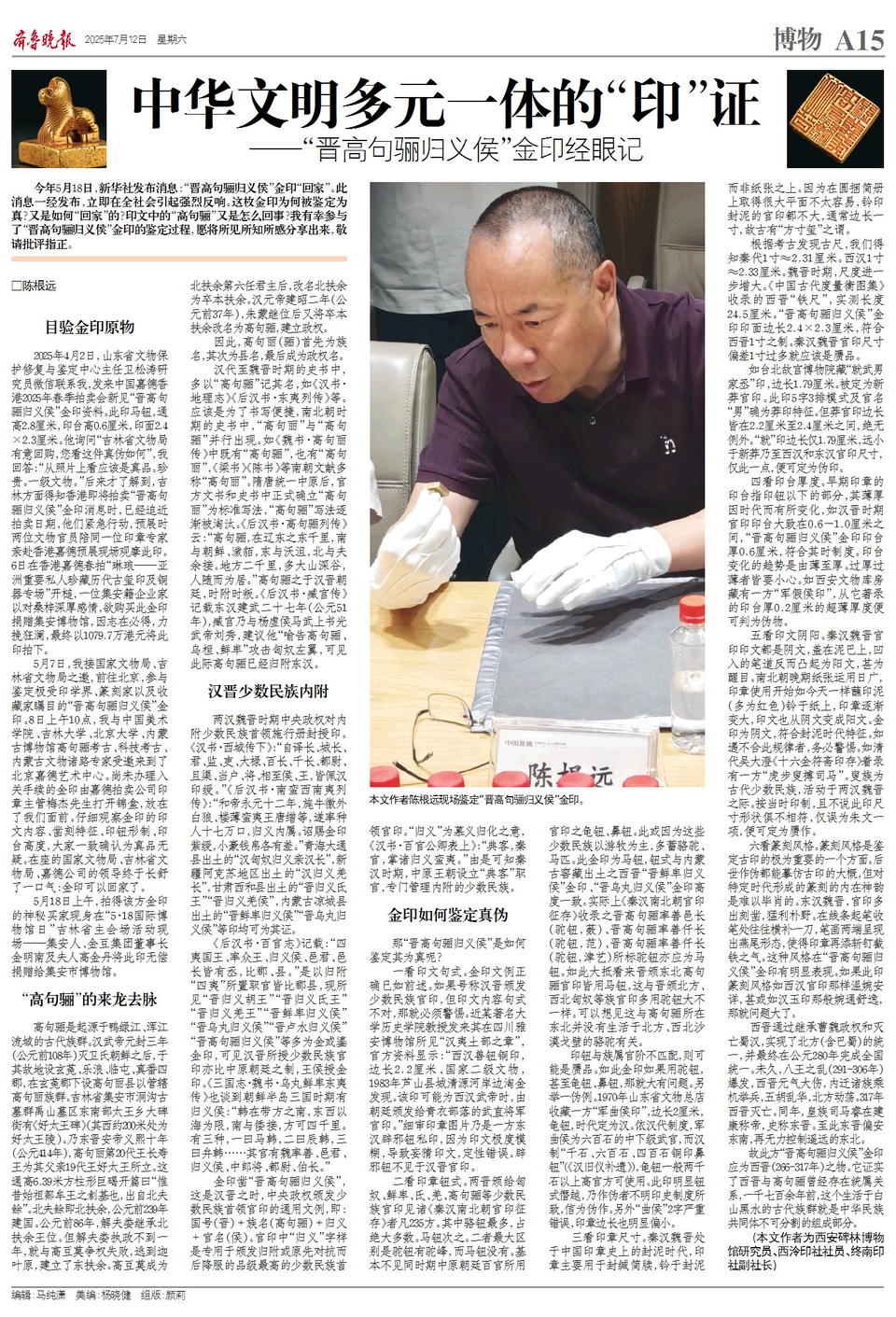 “晋高句骊归义侯”金印如何被鉴定为真?鉴定专家撰文详述经过