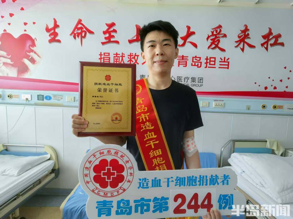 近日,郭嘉豪顺利完成了造血干细胞捐献采集,给素昧平生的远方患者送去新生希望,成为青岛市第244例、西海岸新区第52例非血缘关系造血干细胞捐献者,同时也是青岛市“青选计划”选调生首例捐献者。