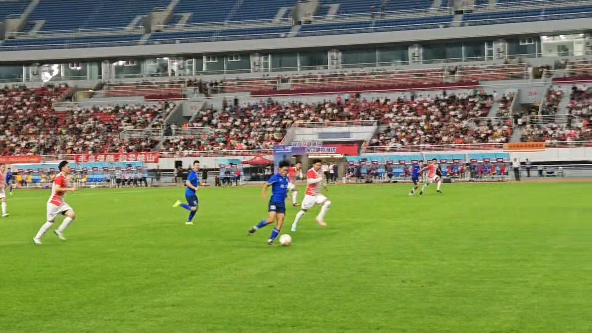 7月12日,2025年潍坊市足球超级杯赛(简称V超)在潍坊奥体公园体育场开幕。揭幕战在现场近3万名观众的呐喊助威声中,潍城区足球队坐镇主场以3比1战胜奎文区足球队。