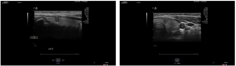 据了解,患者为33岁男性,发现甲状腺结节半年余。血友病A病史27年。间断应用凝血因子VIII治疗。甲状腺超声示甲状腺左侧叶近峡部低回声结节,大小6.6*6.6*6.2mm,TI-RADS分级4b,高度可疑甲状腺癌。术前活化部分凝血活酶时间:86.60秒,凝血因子活度(FVIII)仅0.8%,属于重型血友病,出血风险极高。综合考虑后患者拒绝外科手术选择进行微波消融治疗。