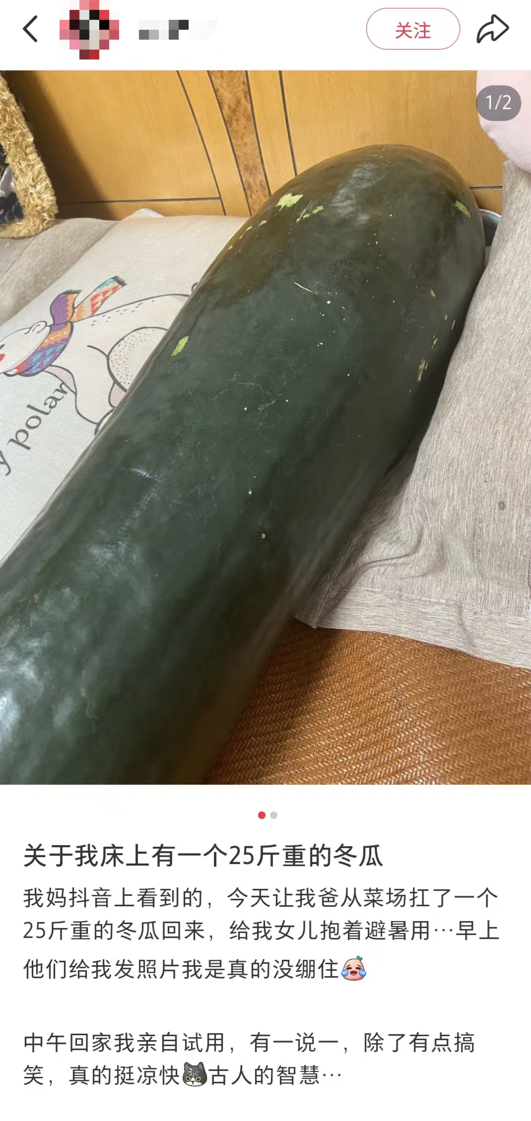前几天,社交平台上一股“清凉风”突然吹来:有人晒出深夜怀里抱着一个大冬瓜安然入睡的视频,引来无数人围观模仿。