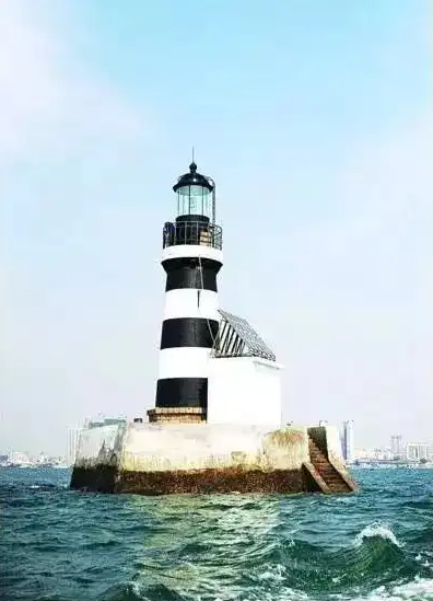 1904年(清光绪三十年),由德占当局精心设计建造的马蹄礁灯桩(后升级为灯塔)拔地而起。它高11米,塔身为坚固的圆形石砌结构,醒目的黑白横带相间涂饰,成为茫茫海面上最易辨识的标识。灯塔依托方形钢筋混凝土基座,稳稳扎根于礁盘之上。这座灯塔自诞生之初,便肩负起守护胶州湾门户、保障船舶安全的重任,其黑白身影从此成为青岛港不可或缺的海上守护者之一。