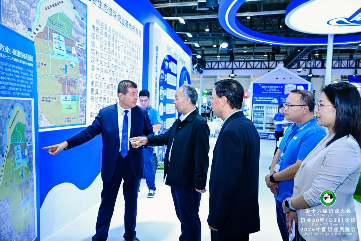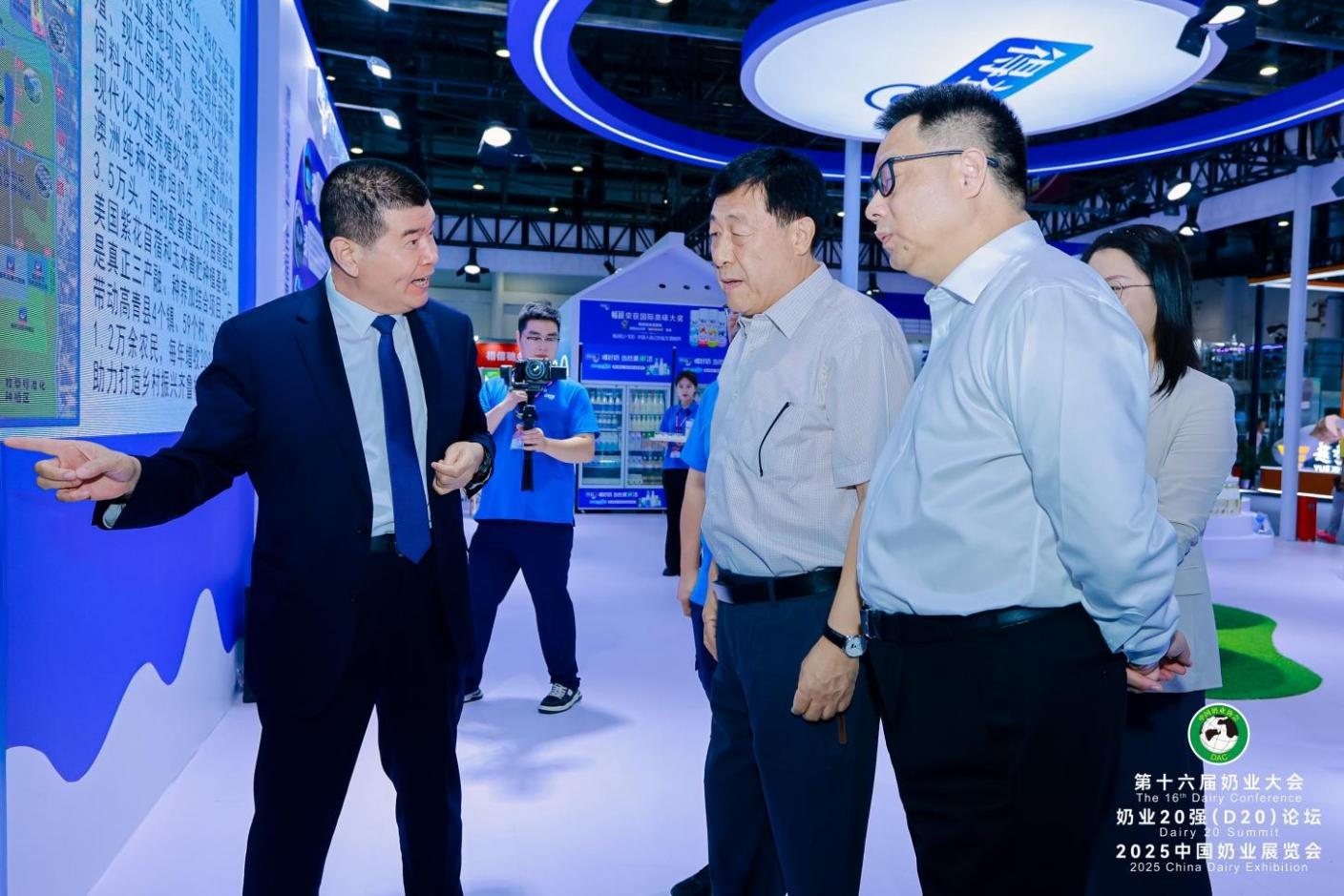 图为:全国政协委员、农业农村部原副部长马有祥(左二)莅临得益乳业展位