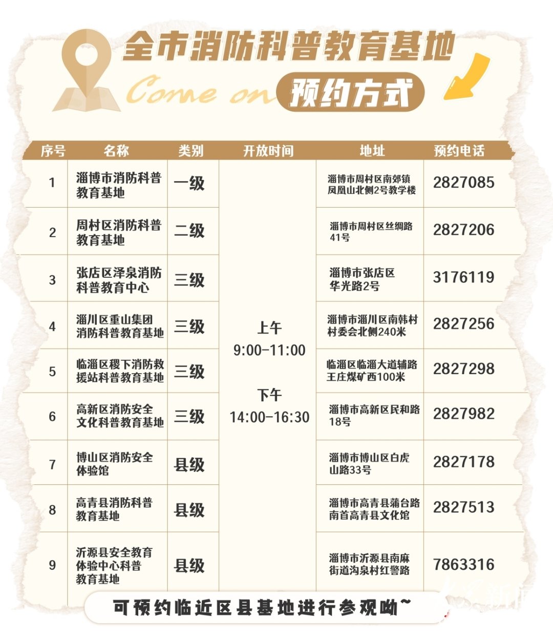 前往任意淄博消防救援站,近距离接触消防车、消防器材装备,感受“逆行者”们的日常训练与工作。参观完毕后,可加盖一枚“队站印章”。