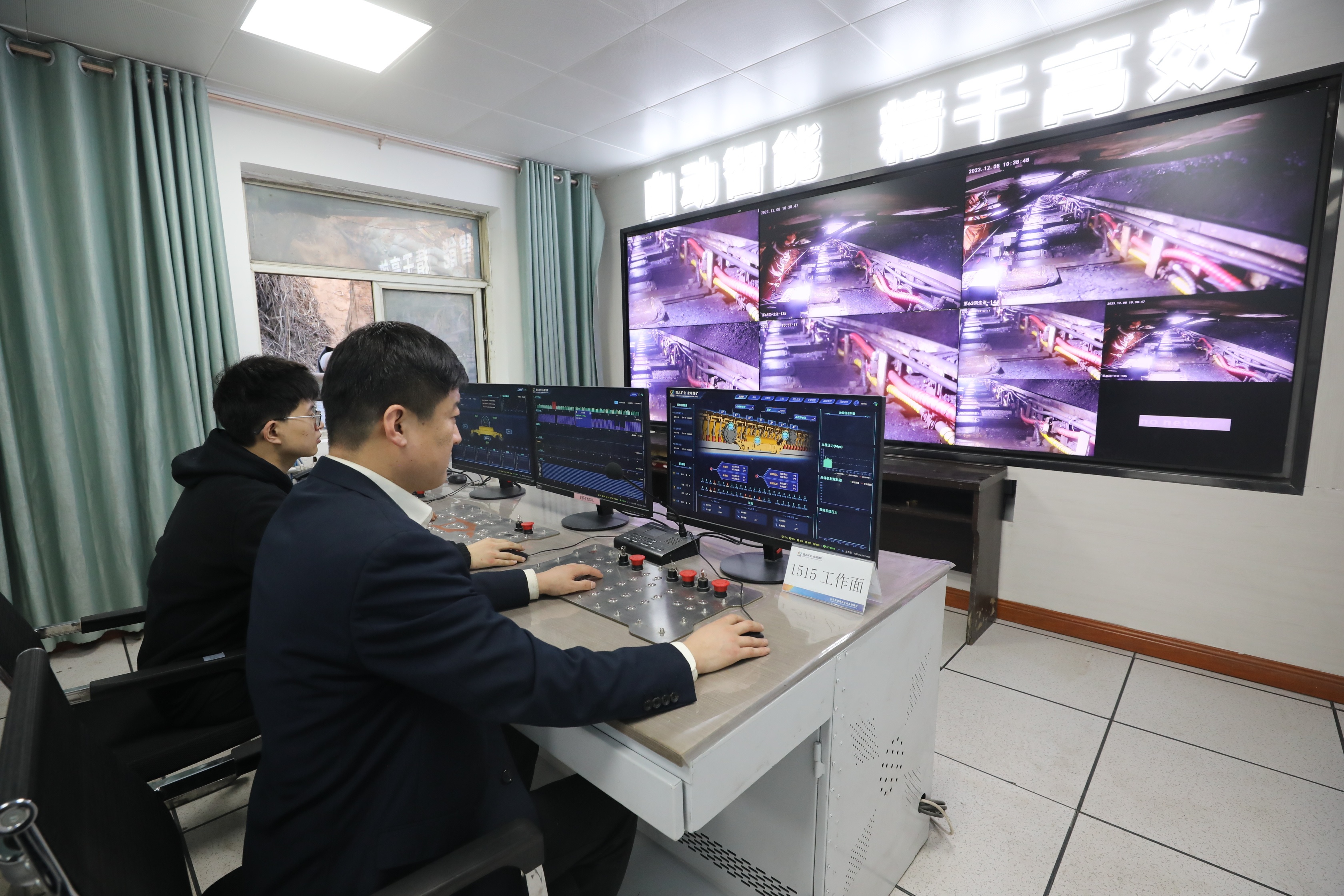 永明煤矿集控员在智能化集控室对采煤机等设备进行远程控制