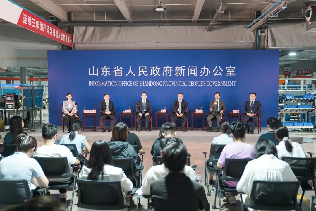 7月15日下午,在济宁市珞石智能制造产业园,山东省人民政府新闻办公室举行“产业链上的山东好品牌”系列现场记者见面会,邀请珞石机器人、海尔机器人、优宝特、纽氏达特4家企业负责人,及省工业和信息化厅相关负责同志,围绕“山东打造机器人创新应用高地”主题与记者见面交流。