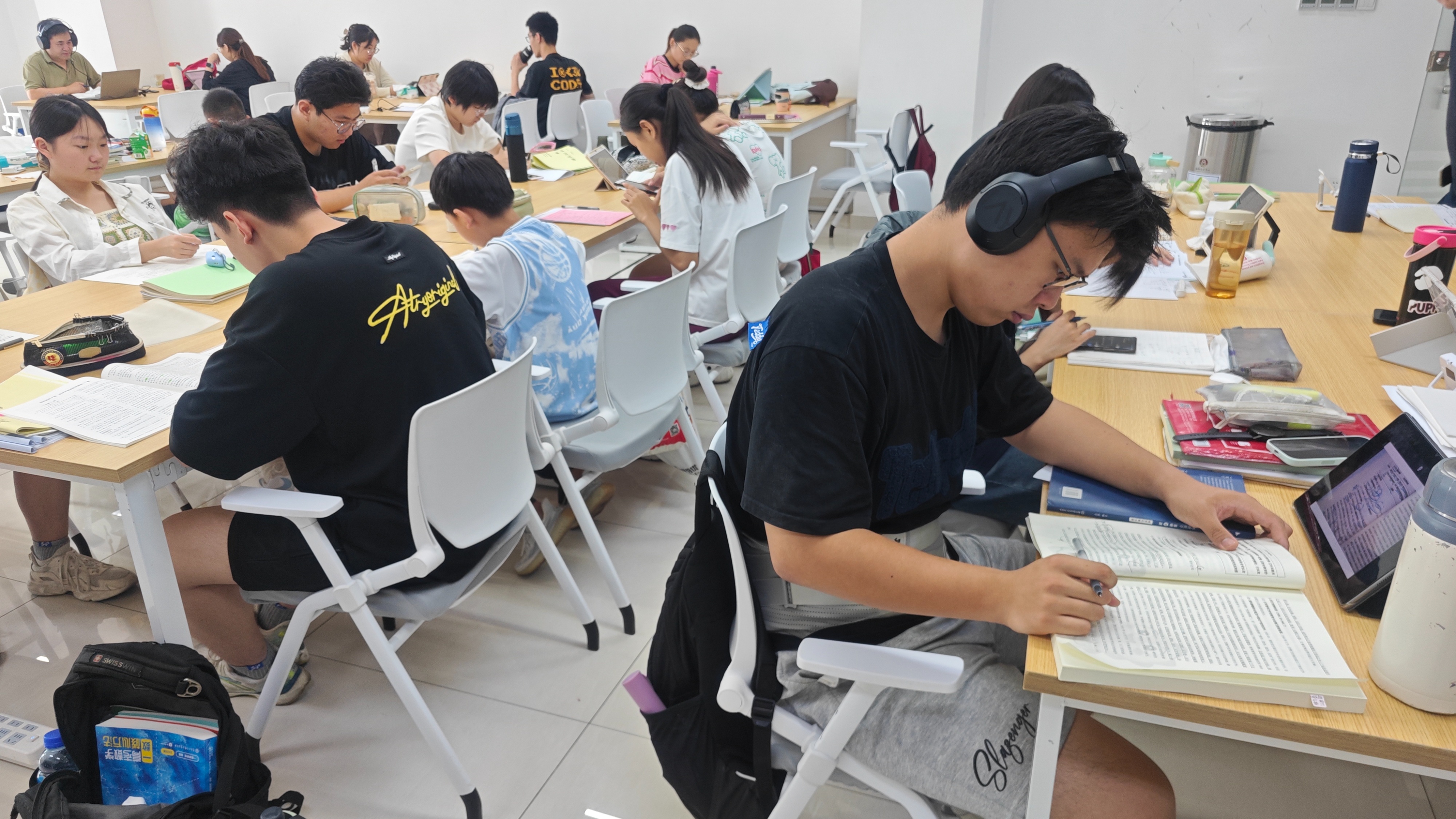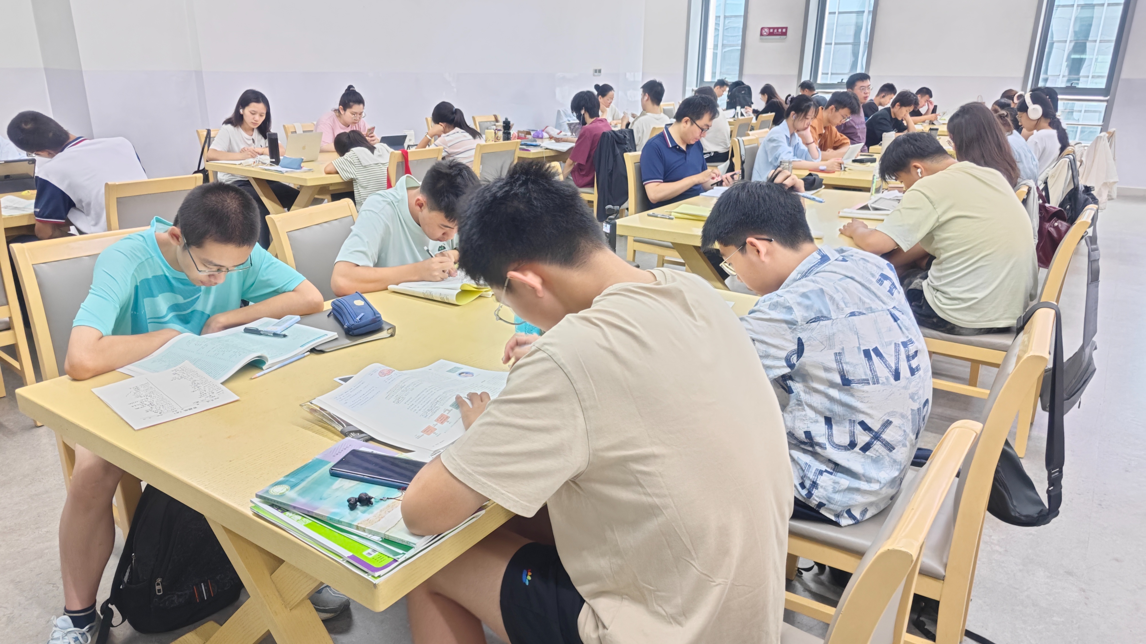 为什么在如此炎热的天气里,大家宁愿早起排队也要来图书馆?答案或许就藏在那浓厚的学习氛围中。在自习室里,记者看到,几乎每个座位上都有人专注地学习,有的人在奋笔疾书完成暑假作业,有的人在电脑前查阅资科准备论文,还有的捧着专业书籍认真做笔记,甚至还有孩童在练习硬笔字。偶尔传来的翻书声、书写的沙沙声和键盘敲击声,构成了这个夏日最动听的交响曲。