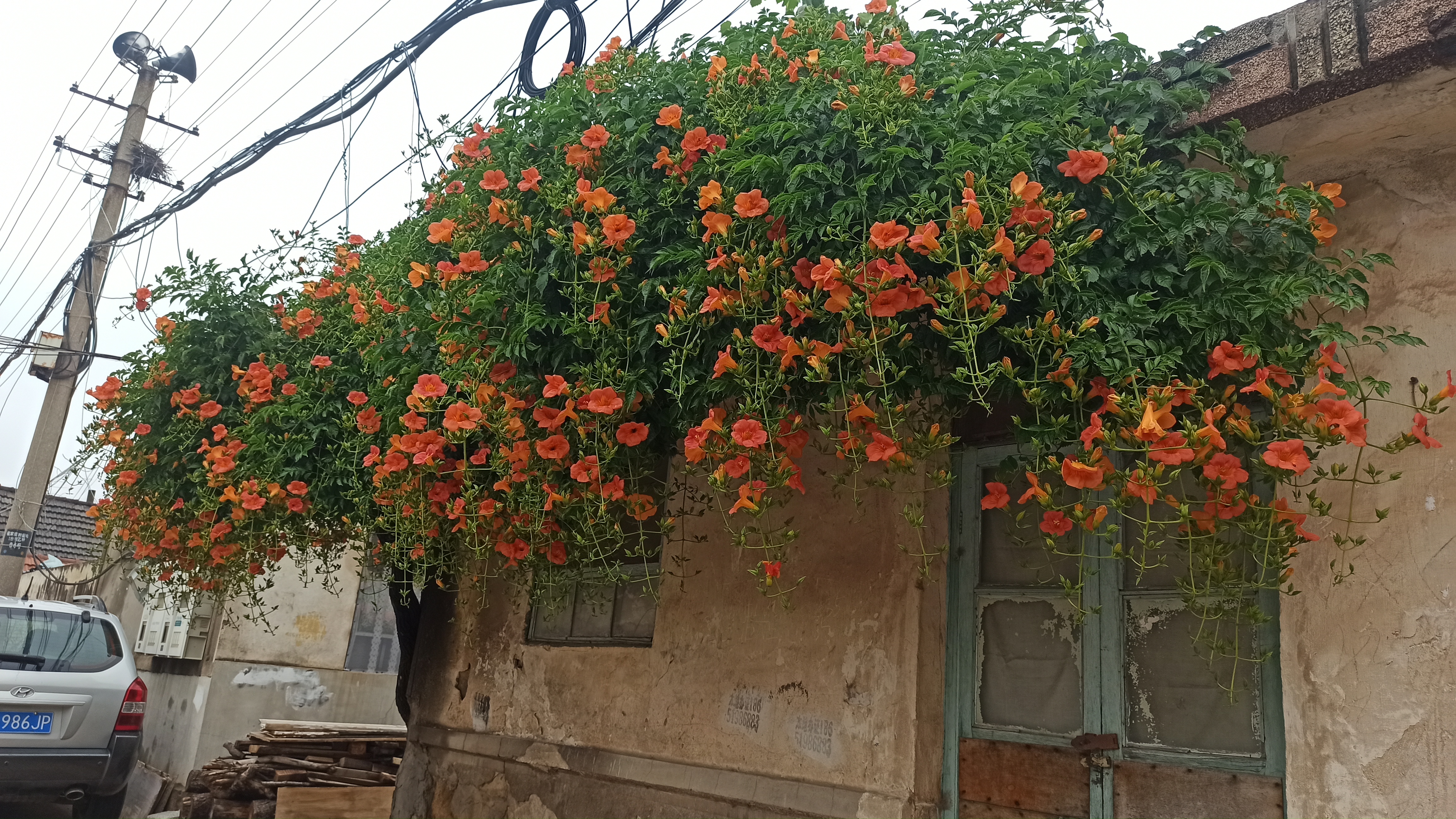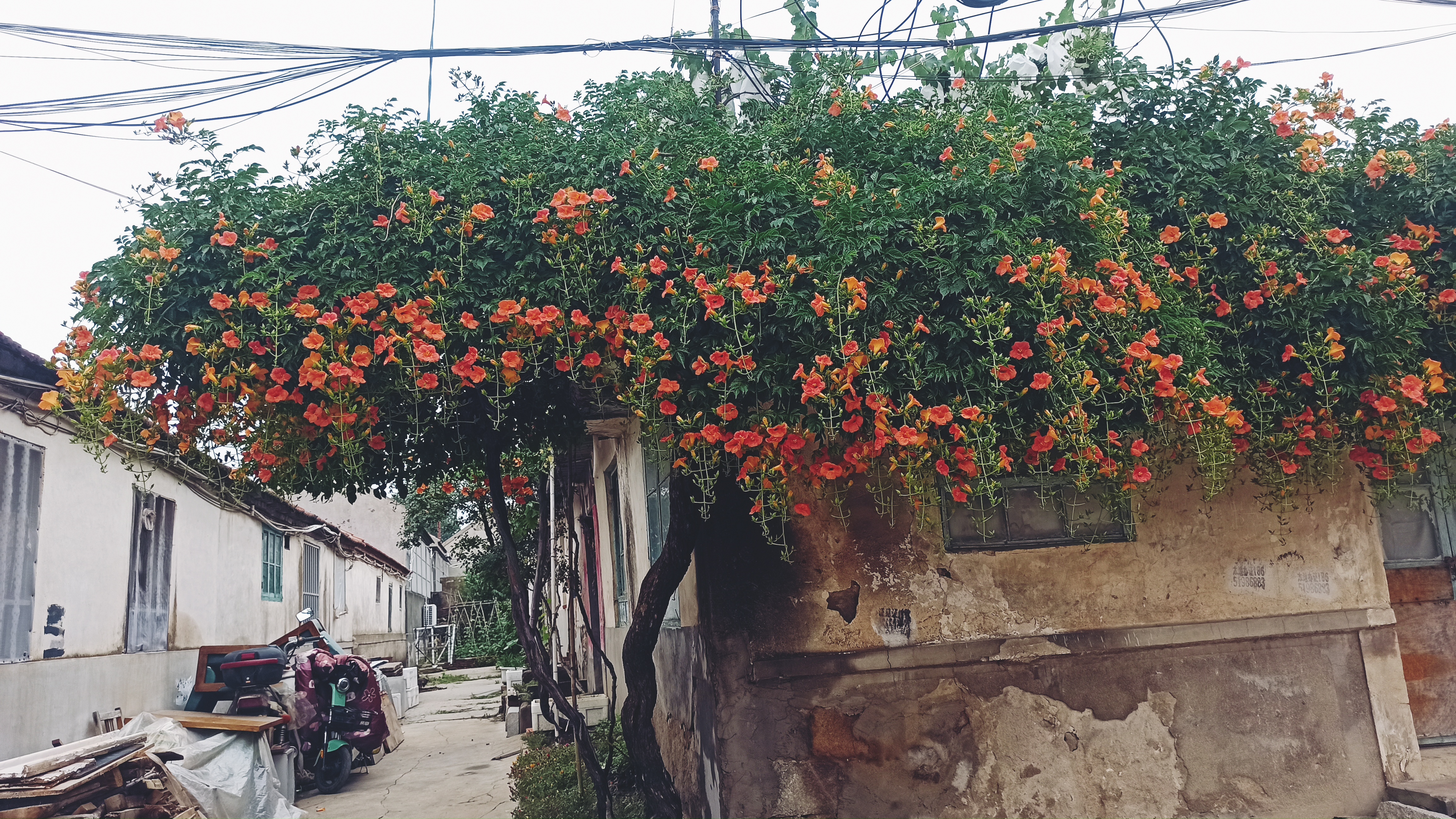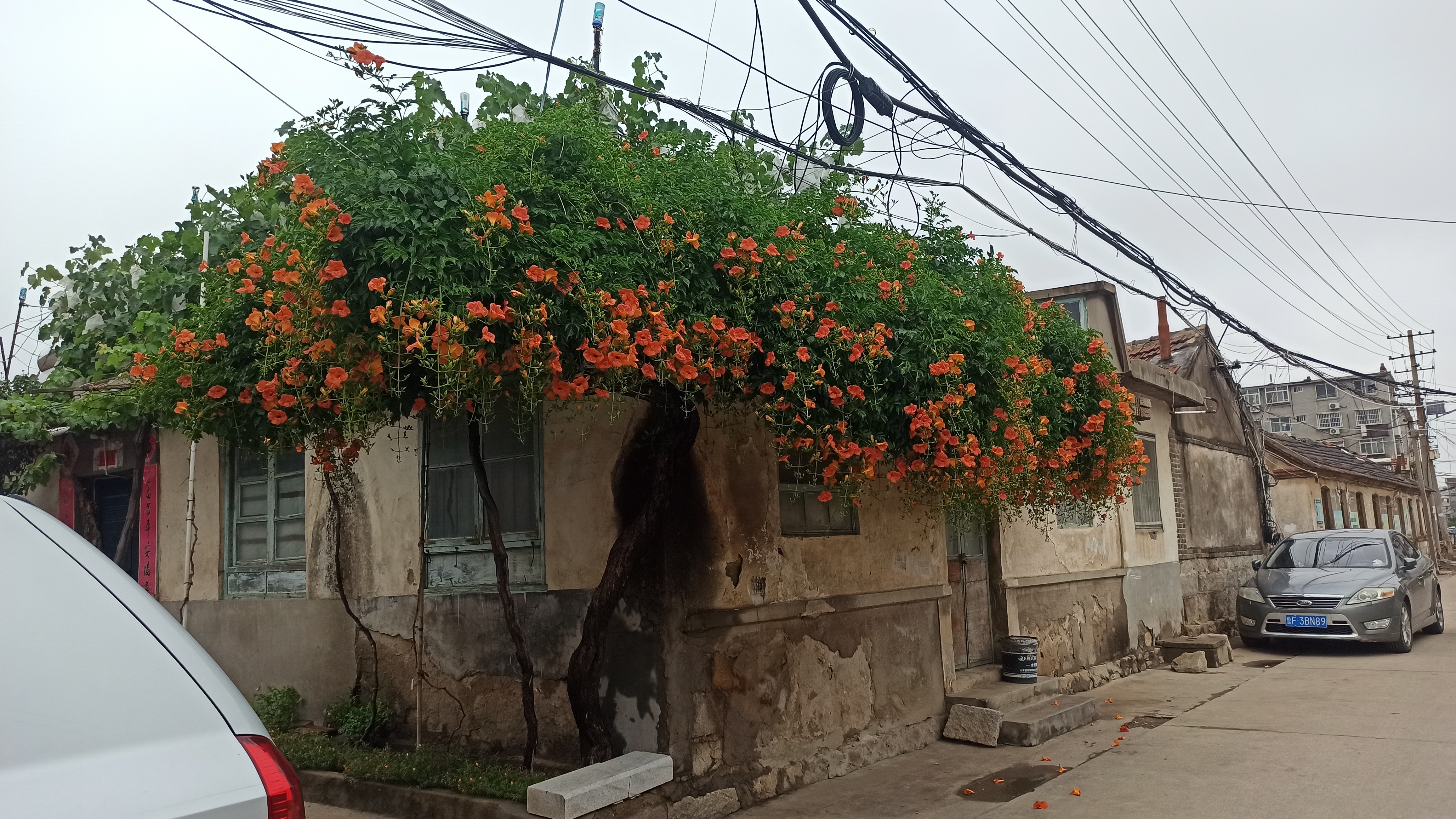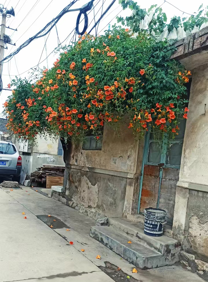 夏季烟台,凌霄花爬满老屋。