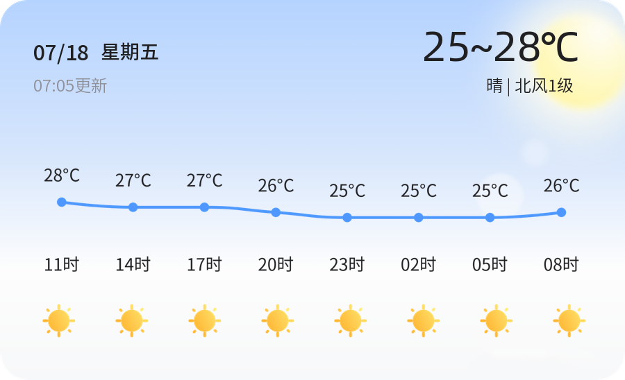 今天是7月18日,农历六月廿四,青岛市迎来了一天的晴好天气。气温在25℃至28℃之间,北风1级,空气湿度较高,达到91%。空气质量方面,PM2.5指数为30,属于优级,适合户外活动。市民在享受美好天气的同时,建议做好防晒措施,及时补充水分,以应对高温带来的不适。此外,由于空气湿度较大,早晚时段可能会有轻微雾气,驾车出行请注意安全,保持适当车距。