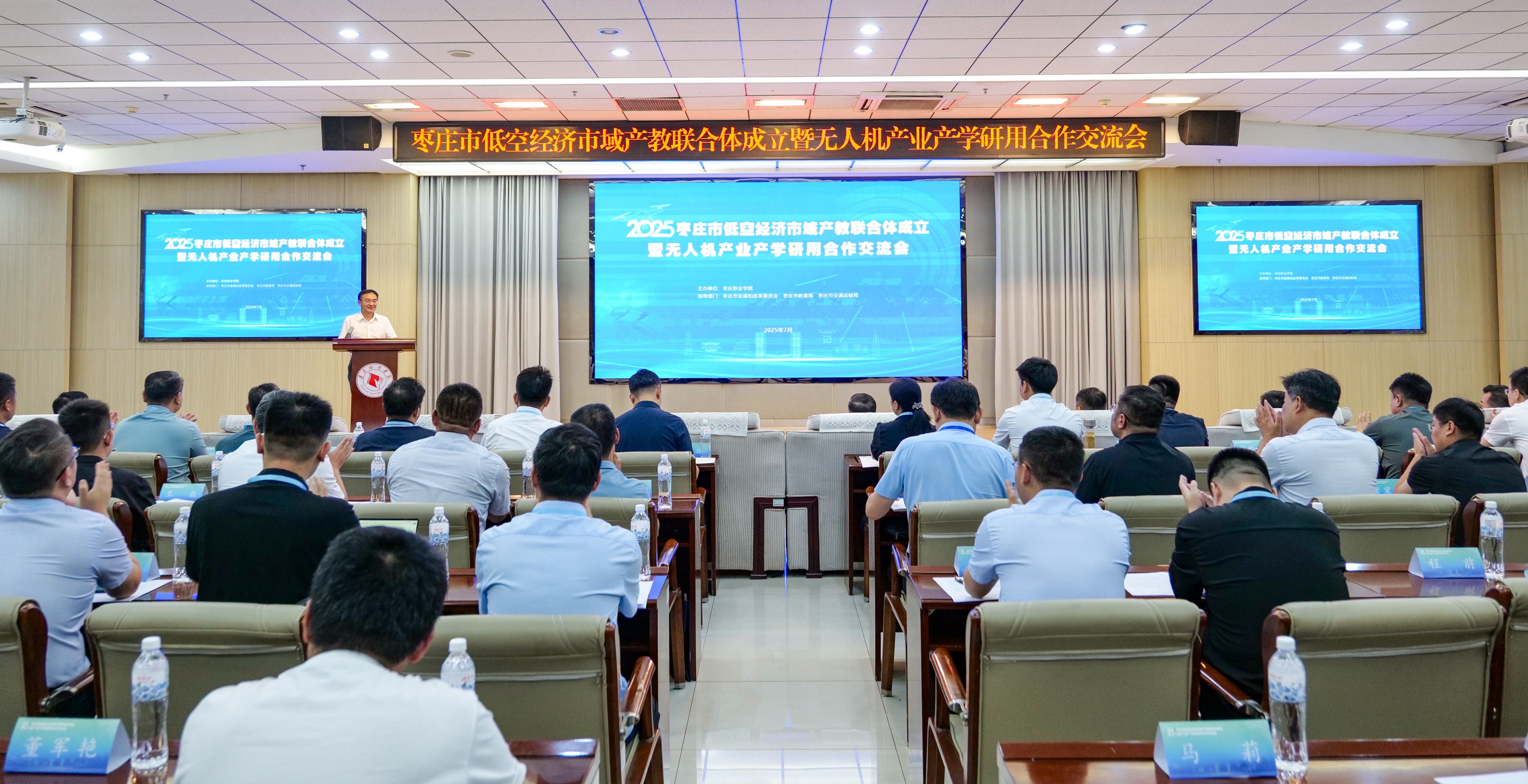 7月15日,枣庄市低空经济市域产教联合体成立大会暨无人机产业产学研用合作交流会在枣庄职业学院举行。枣庄市人民政府副秘书长张伟,市发改委、市教育局、市交通运输局、薛城经济开发区管委会、枣庄科技职业学院、枣庄经济学校、山东航景科技有限公司、山东省创新低空经济发展有限公司等负责同志,以及学院领导梁家和、刘希震、闫博出席会议。来自院校、企业和科研机构的近60名嘉宾齐聚一堂,共同见证联合体成立。