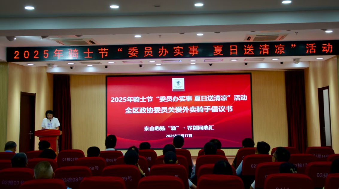七月的泰城,烈日炎炎,骄阳似火。“7.17骑士节”当天,在泰安市泰山区政协委员活动中心,泰山心贴“新”·界别同心汇2025年骑士节“委员办实事,夏日送清凉”活动,如骄阳般火热进行。