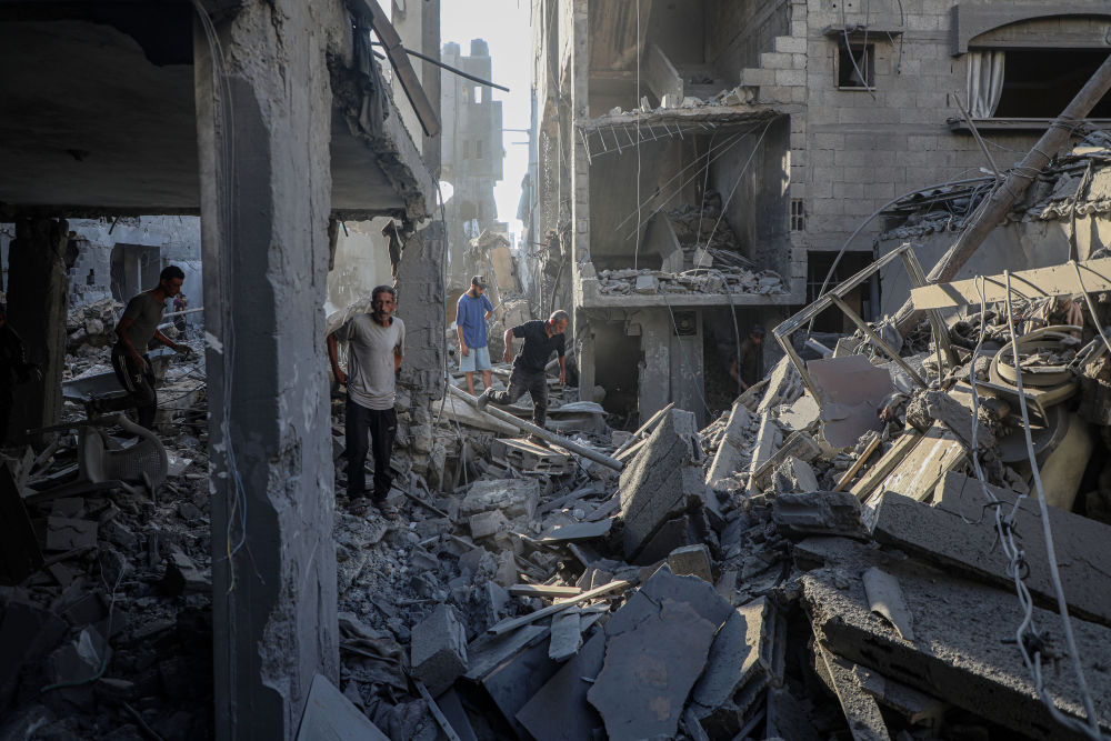 6月27日,民众在加沙城查看以军袭击后的废墟。新华社发