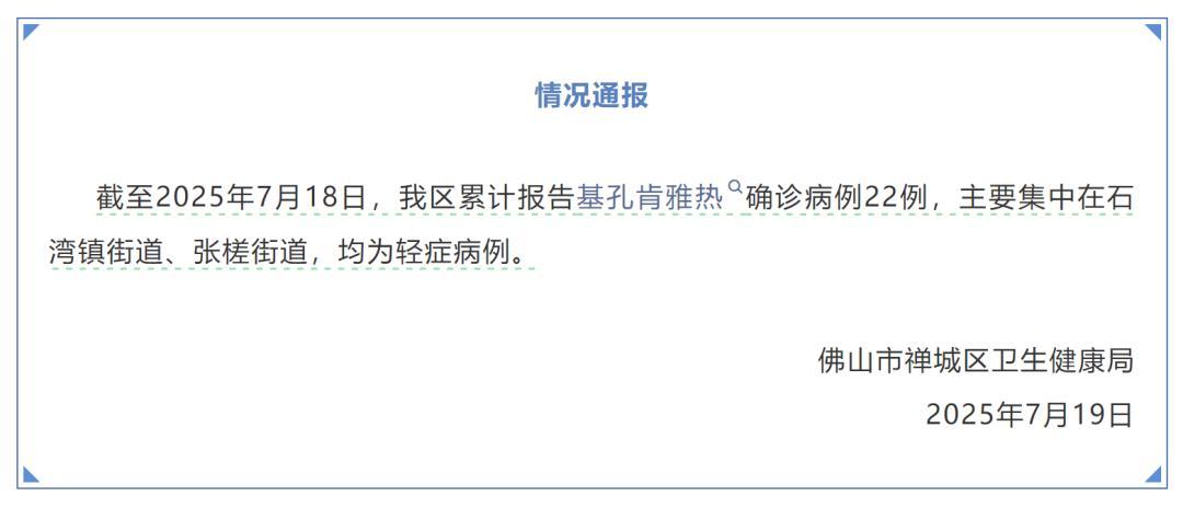 据此前报道,7月15日下午,广东佛山市顺德区卫生健康局通报称,7月8日,顺德区监测发现一起境外输入引起的基孔肯雅热本地疫情。