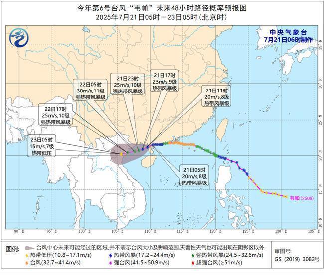 中央气象台7月21日06时继续发布台风黄色预警: