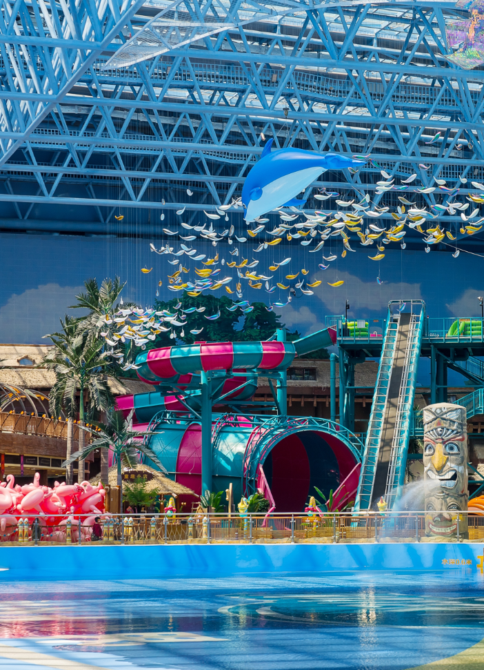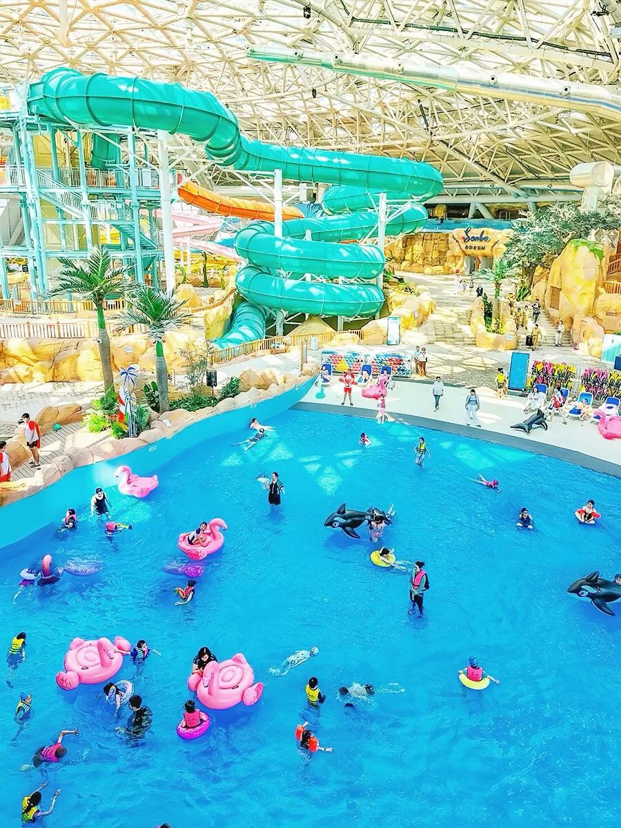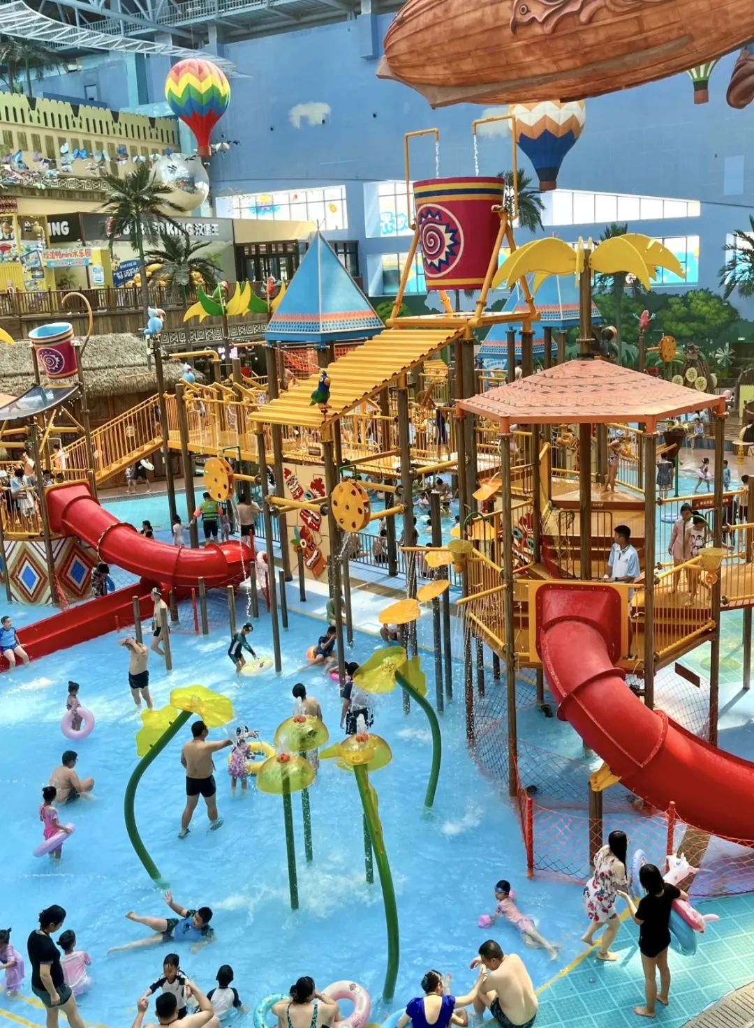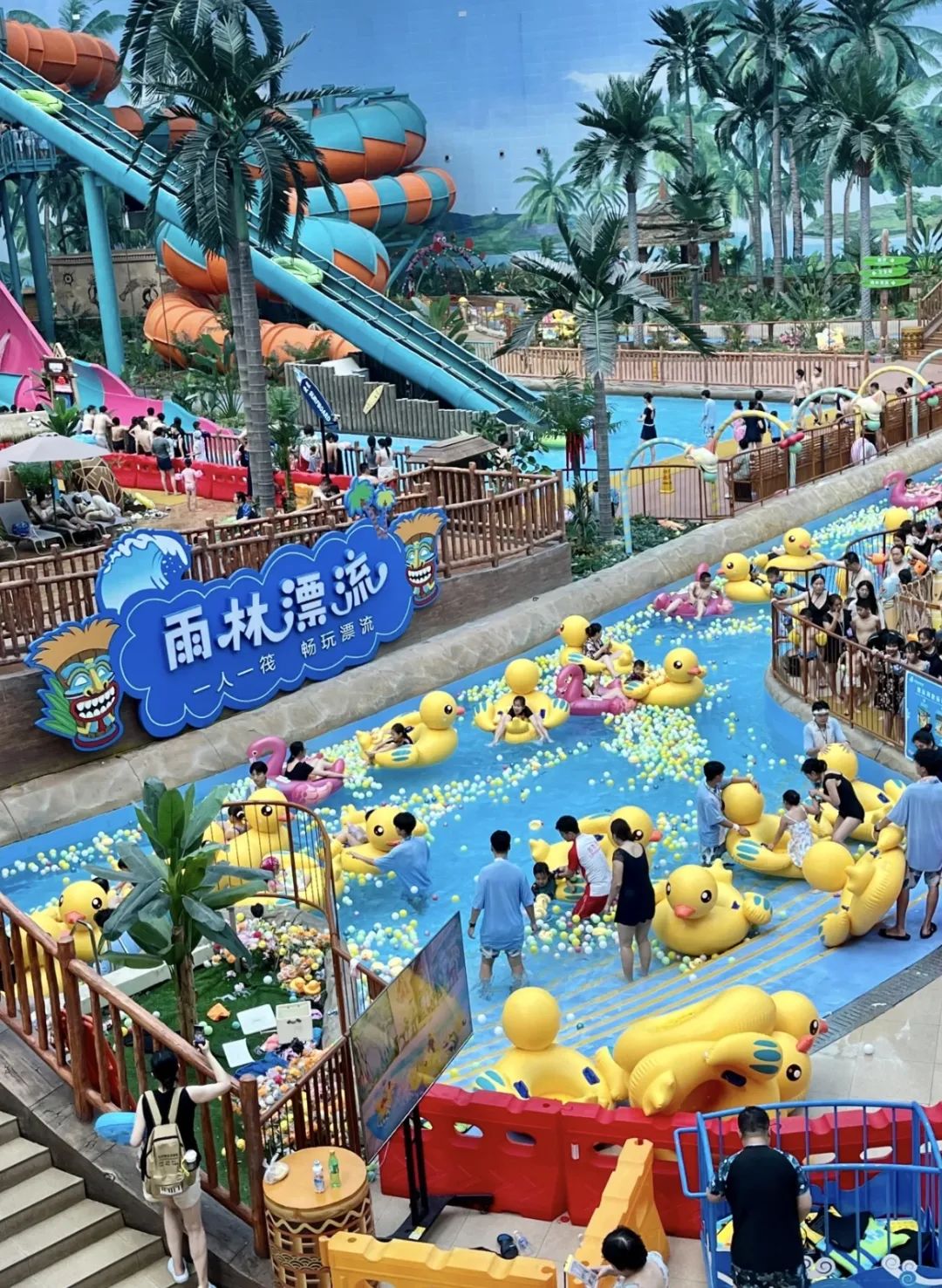 室内还有2.08万㎡的30℃恒温水乐园,「造浪池」、「冲浪池」、「时光穿梭五组滑道」……仿佛闯入热带海岛世界,无惧骄阳,彻底摆脱四季晴雨束缚,畅快玩水!