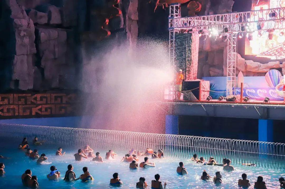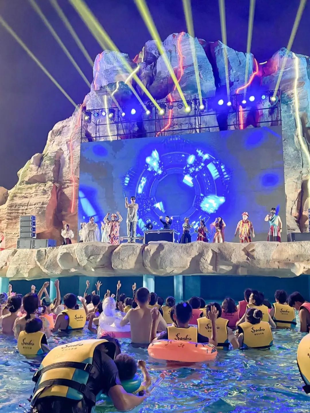 到了傍晚,「激情海浪池」变身水上迪厅,跟着DJ的节奏在浪里蹦跶,水花溅满身,快乐也满格。