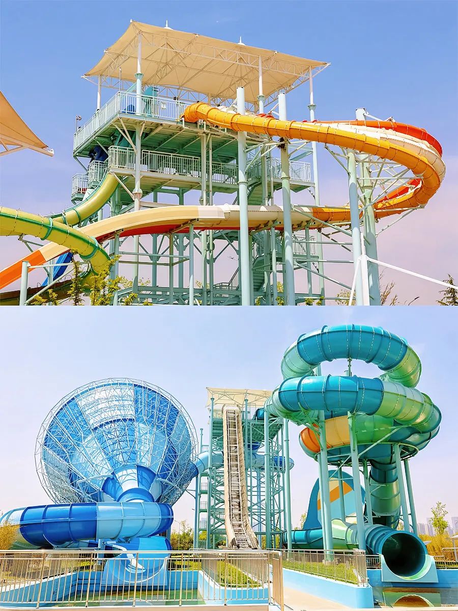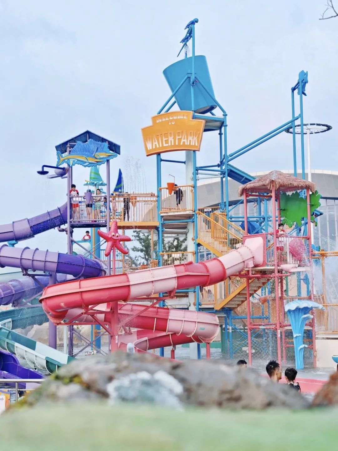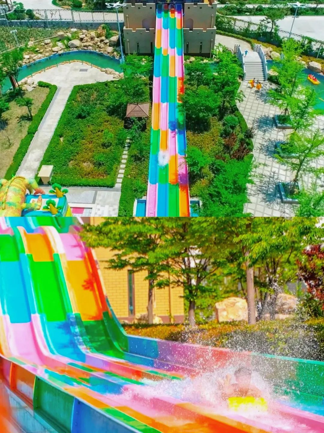 「海浪池」里,动感水炮+人工造浪,炸出满地尖叫;「彩虹滑道」以精妙曲度,将“极速飞翔”拉满;「螺旋滑梯」组团俯冲,从加速到浪花飞溅,失重快感一路飙升~