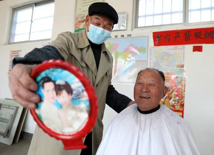 虽然是义务理发,但王元忠绝不“凑合”。他不但自学精进理发技艺,还抽空到镇上、县里请教专业理发师。渐渐地,他的手艺越来越娴熟,找他理发的人也多了起来,本村外村的都有。有很多人对他说,反正理发不收钱,剪短就行,何必费心。王元忠却说,“头发是脸面,也是形象!我得对得起咱村里老人们对我的信任。”每一次理发他都一丝不苟,把来理发的老人收拾得干净清爽。“别看元忠理发不要钱,理得比店里还板正,啥时兴的发型都能理!”村里的王明恩老人说。就这样,这份坚持,一守就是42年。