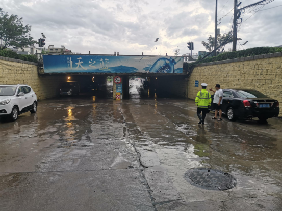 7月21日凌晨,降雨导致高新区经十路大正路路口和旅游路凤凰路路口出现明显积水。济南市公安局交通管理支队高新区大队第一时间联动办事处、路政及地铁施工单位展开紧急排水作业,同时对积水路段实施临时交通管制,引导车辆分流绕行。