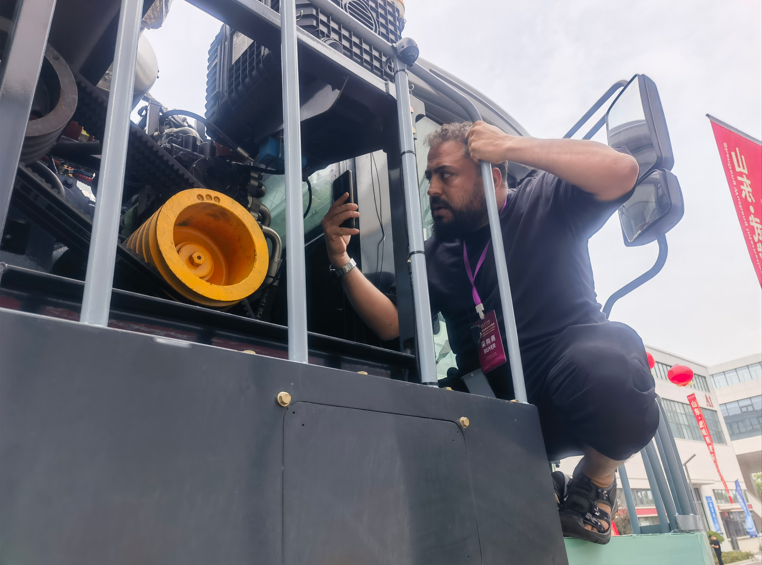 农机展区前面最热闹,有位来自土耳其的采购商,在近4米高的辣椒专用收获机械上爬上爬下,不时掏出手机拍摄。“线下面谈有效率。”欣大路特种车辆有限公司负责人李现辉说,相比参加其他展会,这种方式能节省获客成本,也更加精准,这对当前急需海外订单的企业很重要。
