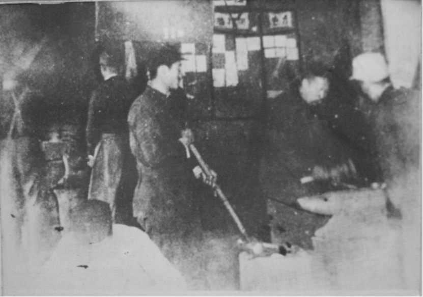 沉重的钢轨被拖回后,先在烘炉中烧得通红。年轻的军工们,抡起沉重的大锤喊着号子,汗水如雨般砸在烧红的钢料上,发出“滋啦”的声响,升腾起白烟。那时没有机械设备,全靠人工抡锤拼力气。但为了前线战士少流血,大家越干越猛,无怨无悔。他们要将这粗壮的“铁龙”一锤一锤地劈开,延展成适合打造器械的细钢条。每一根合格的钢条,都凝结着超乎想象的汗水与力量。粗钢条被送到更安静的工坊。这里,炉火依然通红,但锤声变得细密。