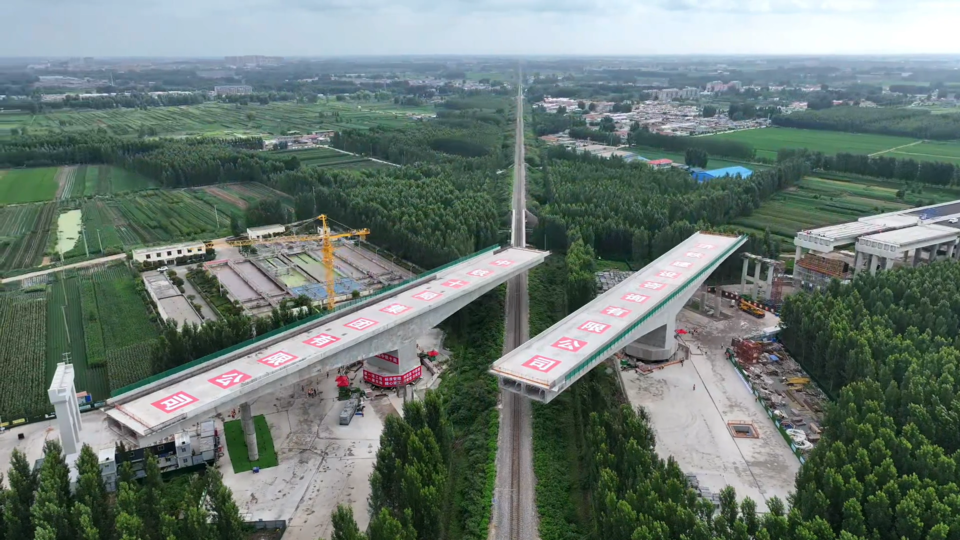 临沂至滕州高速公路上跨胶新铁路立交桥转体成功