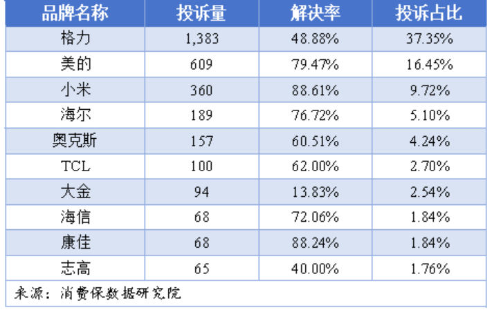 事实上,无论其投诉率是否比其他品牌高,对于数据结果呈现的48.88%的问题解决率,格力电器都不该刻意回避。