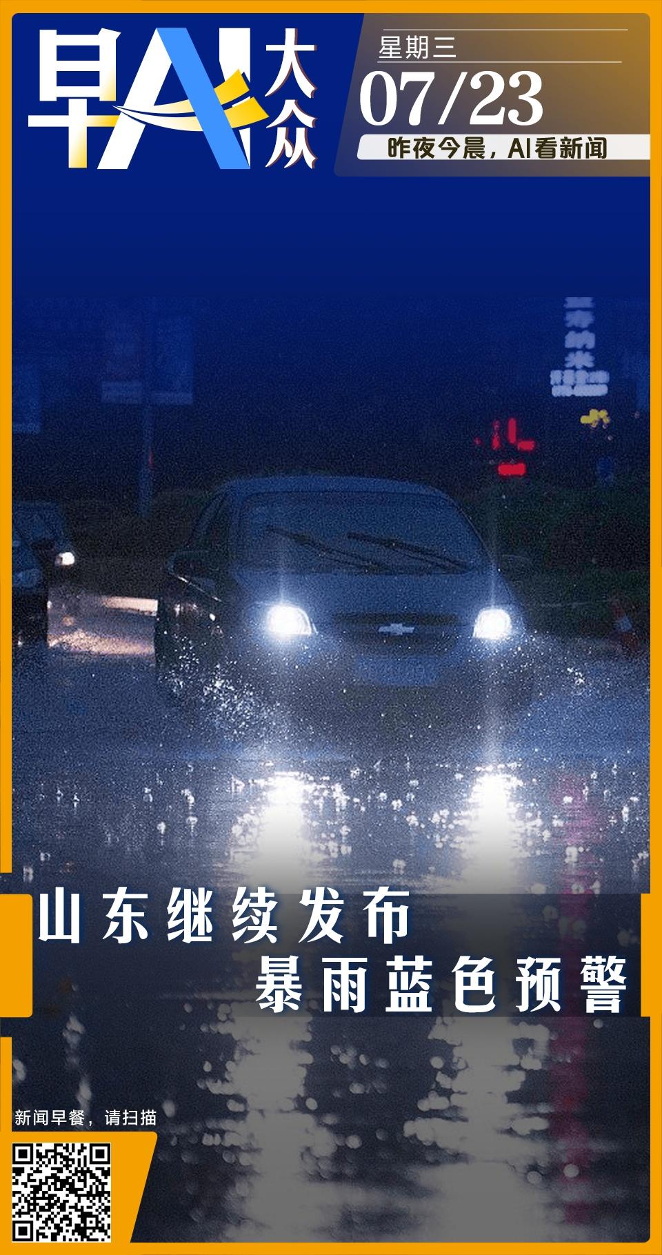 早AI大众|山东继续发布暴雨蓝色预警;特朗普称美菲达成贸易协议