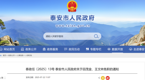 7月22日,泰安市人民政府网站发布了一则人事任免通知,详情如下: