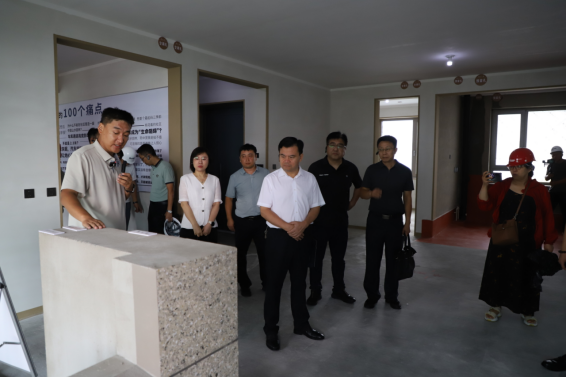 此次调研采取现场观摩指导、座谈交流的方式进行。在我市高品质住宅试点项目泰山城投集团“泰山人家”工地现场,调研组先后参观了项目售楼处、样板间、透明工厂等区域,深入了解了“泰山人家”高品质住宅从设计到建设、从景观到配套的打造情况。
