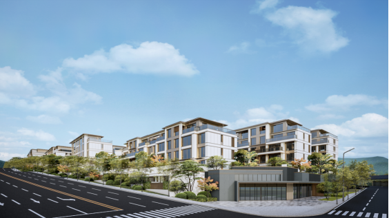 在打造好社区内部环境的同时,也着力把外部环境打造好,通过架桥、道路连通等方式,实现景观、配套的共享,项目抬高5-6米,依山就势打造立体社区,上层是看山看水的好社区,下层是可以平进的社区车库,通过合理利用东西向20余米的现状高差,不仅大幅减少土石方开挖,降低了成本,又让更多住宅具备更好地看山看水观景条件。