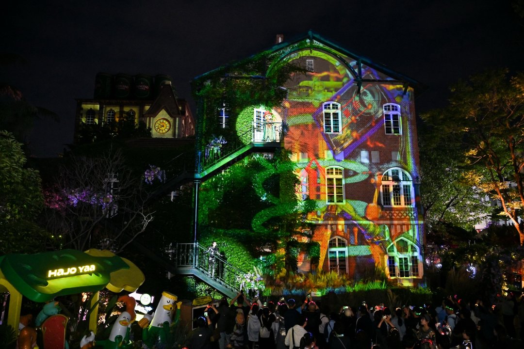 鲸鱼跃空、人鱼畅游、巨型水母游弋、北极熊漫步等海洋奇观灵动呈现,“皮卡丘”“吃豆豆”等经典IP亦惊喜登场,最终以“浪花与啤酒,与世界干杯”点亮青岛地标,巧妙融合科技创意、海洋符号与城市情感。